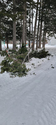 両手に大きな袋をぶら下げて、「おはようございます!」