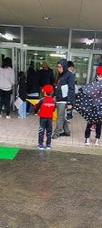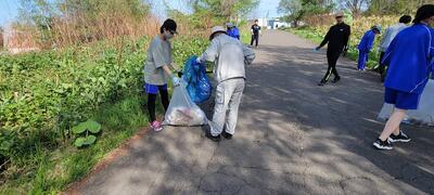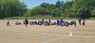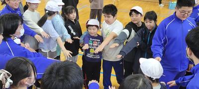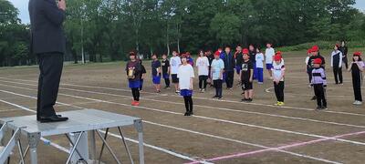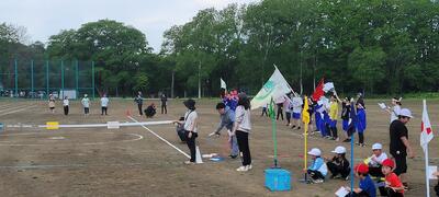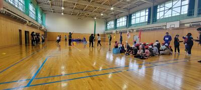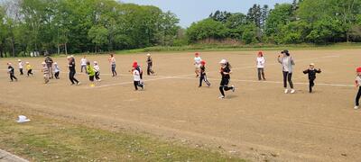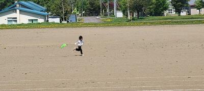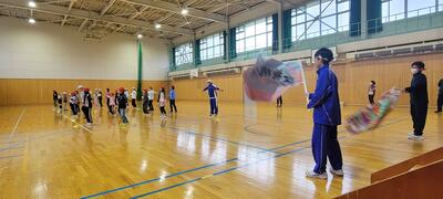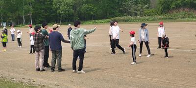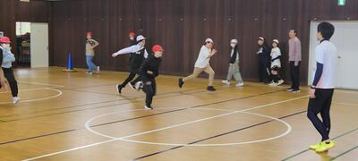 渚滑小27名、渚滑中40名が集まりリレーをしています。