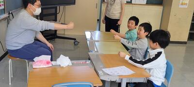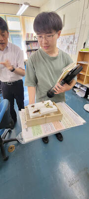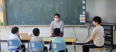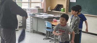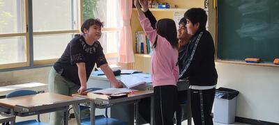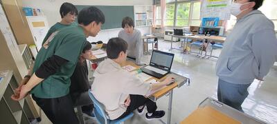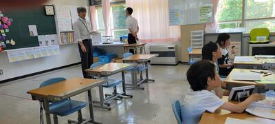 校舎を回っていると、理科室で子供たちと担任が悩んでいました。