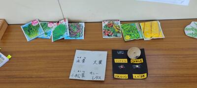 校舎内の廊下には、「種」や「種芋」が展示されていました。