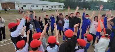 時々、紅組、白組に分かれて中学校生徒が活動の価値付けをしていたり、説明をしていたり、