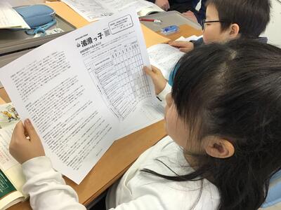 教科書の教材に触れた後、担任は「学校だより」を用意していました。
