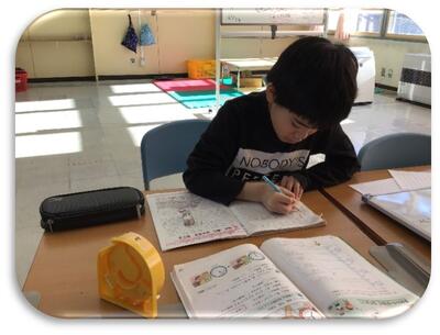 そこにはもう自学の時間を始めて集中して取り組んでいる彼らがいました。